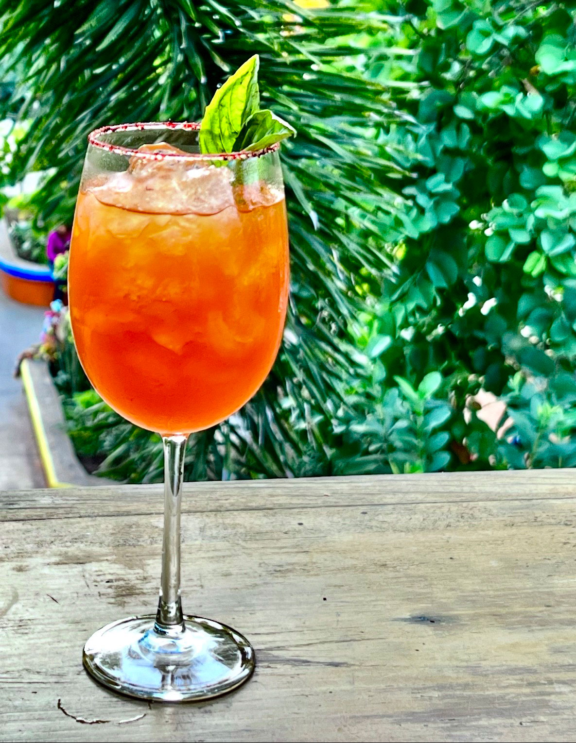 Rey Campero Mezcal, basil, lime, simple syrup, and fresh squeezed grapefruit juice